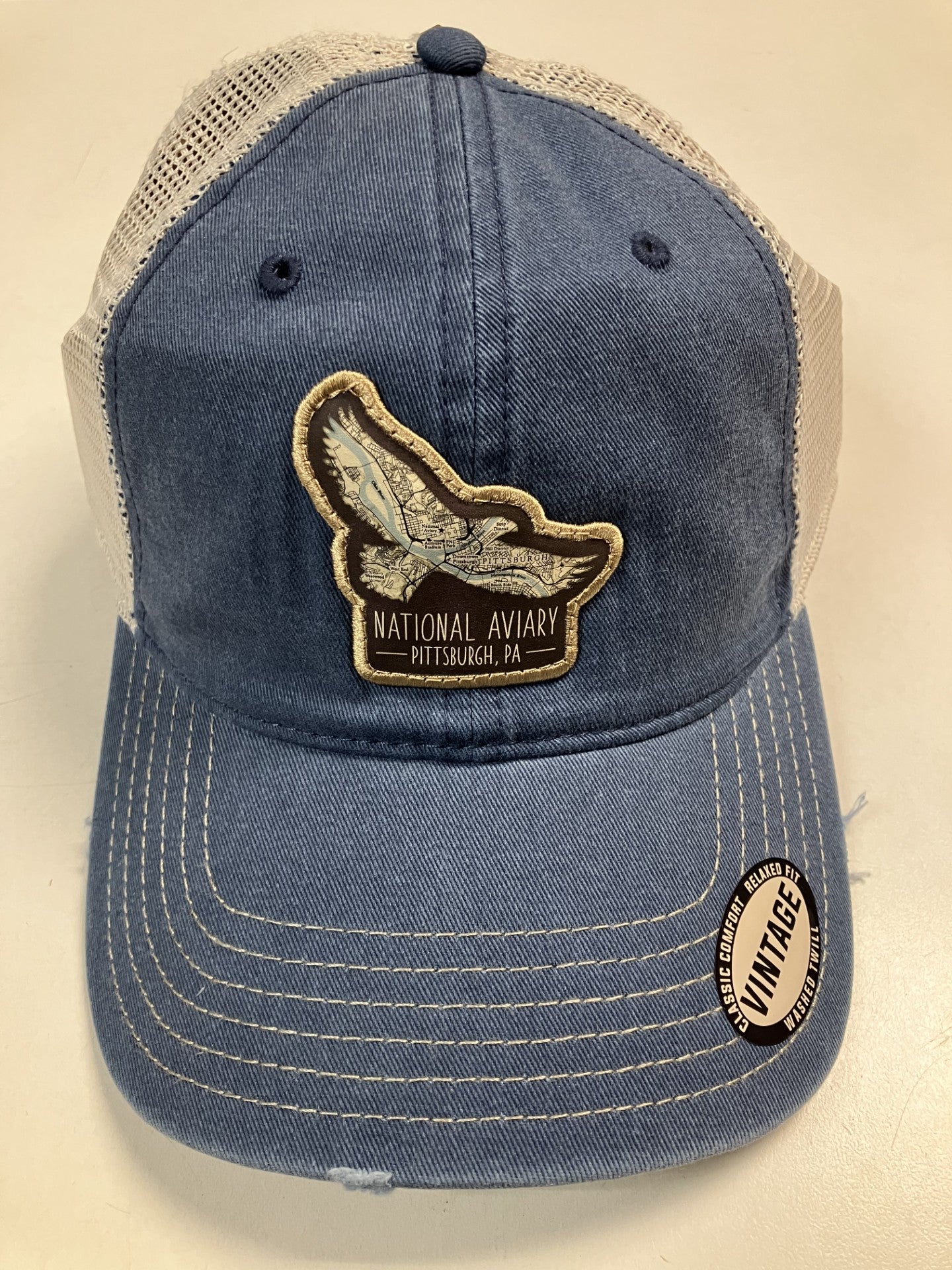 Wear a piece of the National Aviary and of Pittsburgh! This trucker-style ball cap contains an embroidered patch with a map of the North Shore and North Side of Pittsburgh. The National Aviary is starred to help pinpoint our location!